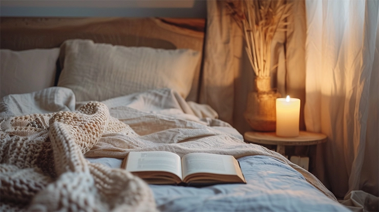 Ugasite jarko svjetlo i upalite lampe toplog tona. Dodajte mirisnu svijeću (koju ćete ugasiti prije spavanja) ili difuzer s lavandom. Mekano svjetlo, lagana muzika i uredan prostor signaliziraju umu da je vrijeme za odmor.